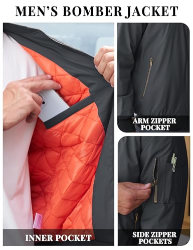 TACVASEN Men's Light Bomber Jacket Windproof Warm Wrok Coat for Men Spring Fall Casual Windbreaker with Zipper Pockets Dark Grey, S