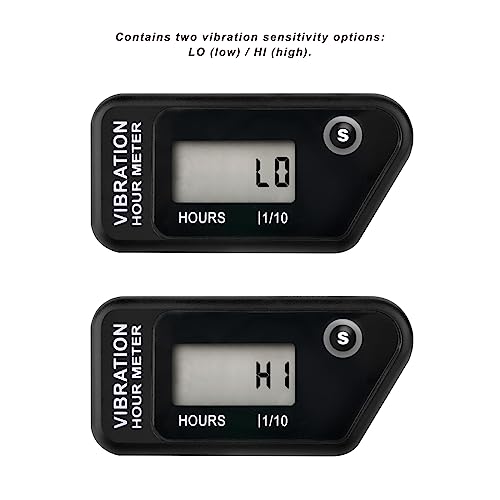 - VIBRATION ACTIVATION----The wireless vibration activated hour meter tracks the number of hours you have placed on the machine by detecting the vibration intensity and amplitude of the machine., HOUR METER----Vibration hour meter accumulative total running time TOT, total time cannot be reset.Timing range: 0-99999H, 0.1H accuracy.Recording partial running time PAR,for example: maintenance and oil change reminder service, resettable., VIBRATION SENSITIVITY----There are two selectable sensitivity levels (low and high) for accurately sensing the vibration frequency of different machines during operation. Set the sensitivity to high or low to suit your machine vibration (SEN), LOCK FUNCTION---- Hour meter includs lock function, which can prevent waste during transportation effectively. When the timer is locked, it is equivalent to shutting down, the reading is stored automatically, and the next cycle is accumulated directly., OTHER ----Built-in battery;Double-sided sticker fixed;Easy to install; Contains detailed instructions for use;Waterproof rate: IP68; Patent, CE ROHS certification;2-year warranty.