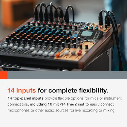 - 16-Track multi-track recorder (WAV, up to 48kHz/24-bit) to SD, SDHC and SDXC cards (Class 10 or higher required), Punch in/out capability (up to 8 tracks simultaneously), Built-in USB Audio Interface to send/receive (16-in/14-out) audio data to/from DAW, 14 inputs (10 monaural XLR/TRS balanced and 2 stereo-paired TRS balanced), 10 mic pre-amps utilizing Tascam Ultra-HDDA mic pre-amp technology (Ch 1 thru 8)