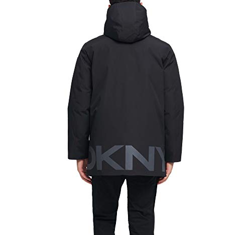 DKNY Men's Water Resistant Hooded Logo Parka Jacket, black, X-Large
