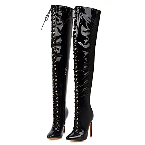 CUTEHEELS Cross Strap Women Over-The-Knee Boots with Stiletto and Pointed Toe