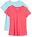 Amazon Essentials Women's 2-Pack Tech Stretch Short-Sleeve V-Neck T-Shirt, Blue Topaz/Neon Pink, X-Large