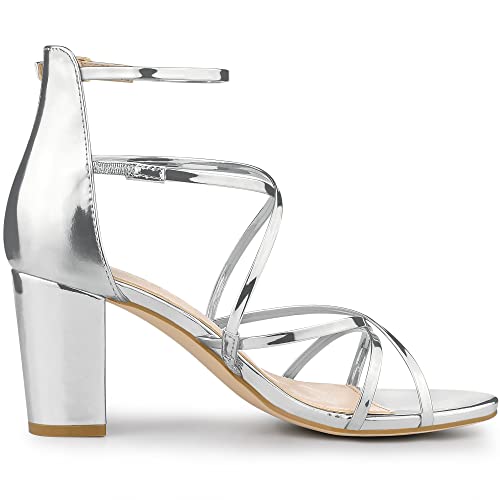 Allegra K Women's Strappy Crisscross Strap Block Heels Silver Sandals - 7 M US