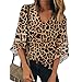 Beauty Collector Women’s Leopard 3/4 Bell Sleeve V Neck Lace Patchwork Blouse Casual Loose Shirt Tops