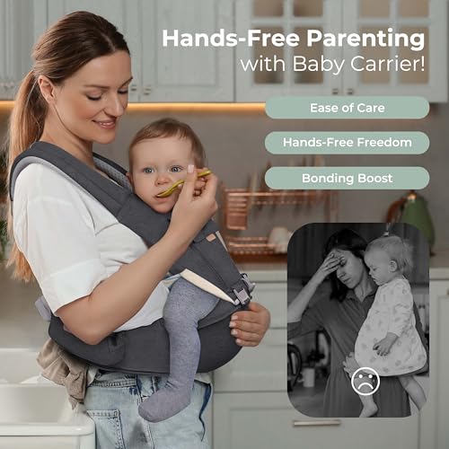 FRUITEAM 6-in-1 Baby Carrier with Waist Stool/Hip Seat for Breastfeeding, One Size Fits All - Adapt to Newborn, Infant & Toddler (Dark Grey)