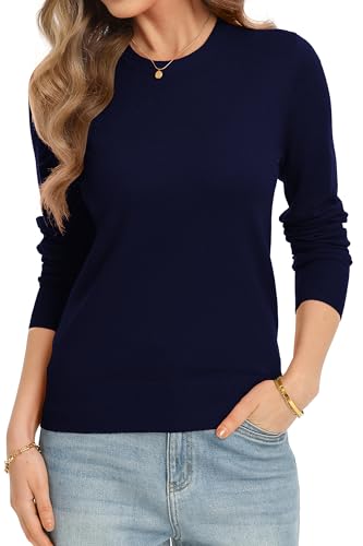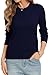 QUALFORT Women's Sweaters Navy Blue Crewneck Sweater Pullover Soft Knitted Tops Medium