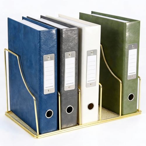 - 【"PRACTICAL AND PRETTY" AESTHETIC UPGRADE】 – Transform your dull workspace into an inspiring zone. Customers love this gold file organizer because it blends high-capacity function with style. The unique geometric wire design features a brilliant electroplated finish, making it the perfect gold desk accessory to elevate your home office, dorm, or studio decor., 【5 WIDE SLOTS FOR 2-INCH BINDERS & MANUALS】 – Finally, a rack that fits thick items. Each of the 5 sections features an optimized 2.1-inch (5.3cm) width, perfectly sized to hold bulky 3-ring binders, textbooks, and heavy medical coding books (like ICD-10 manuals). Unlike narrow sorters, this desktop file rack keeps large volumes upright and accessible without overcrowding., 【TRUSTED BY MEDICAL PROS & STUDENTS】 – A heavy-duty essential for diverse professionals. It is widely used by medical billing specialists to organize reference manuals, by students for course materials and notebooks, and by office workers as a vertical file sorter. The upgraded mesh bottom prevents smaller papers from slipping through, offering a stable base for all your office supplies., 【VERSATILE: FROM VINYL RECORDS TO VANITY】 – Break the boundaries of organization. With its sturdy frame and wide slots, this rack doubles as a stylish record holder for your favorite vinyl albums or a book organizer for novels. Creative users even use it on vanities to store large eyeshadow palettes. It keeps your collections displayed beautifully and within reach., 【STURDY, WOBBLE-FREE CONSTRUCTION】 – No more files falling over. Made of premium plated metal, this wire book stand is heavier and stronger than plastic alternatives. It arrives fully assembled, making it an ideal gift for new graduates, coworkers, or anyone looking to master their desk organization. Experience a tidy mind with a tidy space.