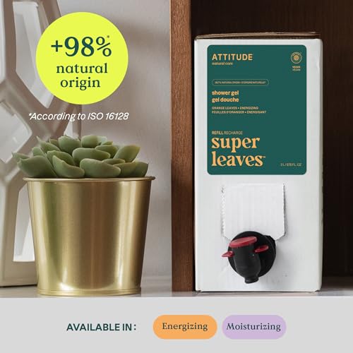 ATTITUDE Body Wash, Made in Canada, EWG Verified Shower Gel, Dermatologically Tested, Plant and Mineral-Based, Vegan Personal Care Products, Orange Leaves, Bulk Refill, 2 Liters
