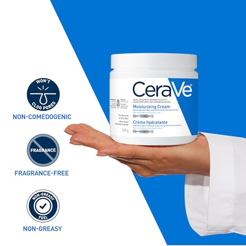 CeraVe Moisturizing Cream, Daily Face, Hands, & Body Cream Moisturizer for Dry Skin With Hyaluronic Acid and Ceramides for Women and Men. Sensitive skin, Oil-free, Non-comedogenic, Fragrance-Free, 539 Grams