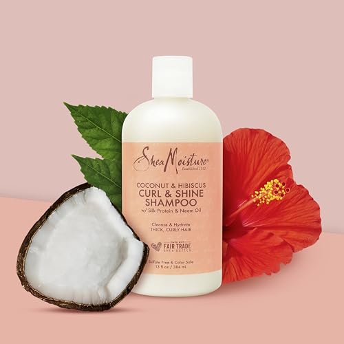- STRESS-FREE DETANGLING : SheaMoisture Coconut & Hibiscus Curl & Shine Conditioner restores moisture to soften dry hair for easy and fast detangling and less frizz., MOISTURE RESTORING FORMULA : Our hydrating blend is infused with Silk Protein , Neem Oil and Coconut Oil., FORMULA BENEFITS : Instantly hydrates to define curls and enhance shine without stripping essential moisture., DETANGLE CURLS, ENHANCE SHINE : A lightweight conditioner that delivers heavy-hitting hydration to improve elasticity and soften dry hair for easy comb through? You asked for it, you got it., SUSTAINABILITY MATTERS : SheaMoisture intentionally uses Fair Trade Shea Butter that is organic and sustainably sourced so you can feel good about choosing us. , SAY YES TO CLEAN BEAUTY : Here’s something you can say yes to – our formulas have NO parabens, NO phthalates, NO petrolatum, and NO mineral oils because NO one has time for nasty additives.