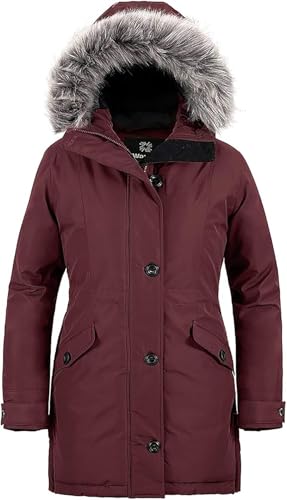Wantdo Ladies Parka Puffer Jacket Winter Jacket for Women Coat Wine Red L