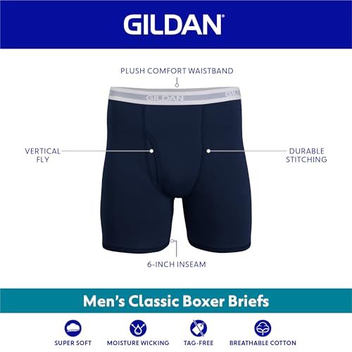 Gildan Mens Underwear Boxer Briefs, Multipack, Navy/Metro Blue/Antique Royal (5-Pack, Classic Length), XX-Large