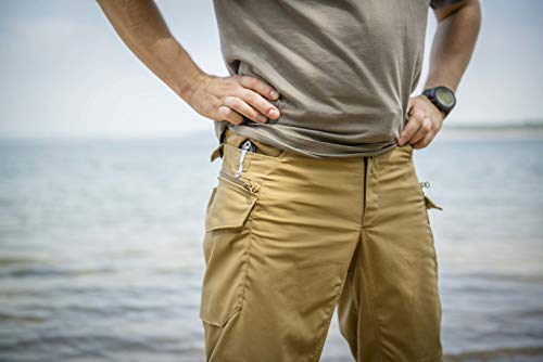 - Extended back midriff protects the kidneys. Two classic front pockets, Button-closed pockets for folding knife, multitool or pocket light. Zippered thigh pockets, Thigh pockets mesh lined for ventilation. Folding saw pocket inside thigh pocket, Drawstring adjustable in waist and leg cuffs. Wax-waterproofing ready. Suspenders-ready, Knee reinforcements Low Profile Protective Pad Inserts-compatible. Weight: 25 oz / 730 gr. ACCESSORIES AND BELT NOT INCLUDED