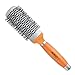 - Ceramic technology barrel heats up faster and retains heat longer for faster styling; eliminates static and frizz, leaving hair shiny and healthy, Vented barrel circulates heat for faster drying, Firm nylon bristles provide good tension to control even the thickest, most unruly hair, Silicone gel makes the brush handle spongy-soft and comfortable to use; provides optimal control without slipping, Silicone gel is combined with antibacterial powder to repel and destroy bacteria for added safety and cleanliness