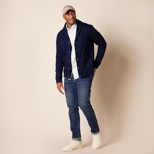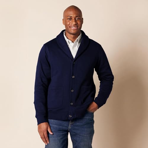 Amazon Essentials Men's Long-Sleeve Fleece Shawl-Collar Cardigan, Navy, Medium