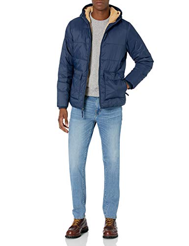 Amazon Essentials Men's Long-Sleeve Water-Resistant Sherpa-Lined Puffer Jacket, Navy, Large