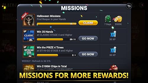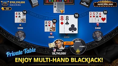 - FREE CHIPS EVERY 4 HOURS - All you need to do to get free chips is just come back every day., LUCKY BOX - What will happen when you collect the free chips 4 times? Open the golden box with the red ribbon around!, SIT-N-GO MEGA TOURNAMENT : Aim for MEGA PRIZE which is 50 times larger than BUY-IN at the SIT-N-GO MEGA.3 potential prizes will be decided from the start of the game and the final winner gets to choose one among the hidden prizes., PRIVATE TABLE - Enjoy Multi-hand Blackjack at the private table exclusively for you! You can play up to three seats per round., JACKPOT : Place a Jackpot Wager to get a chance of hitting the Jackpot at the CLASSIC table. Take risks to be a Jackpot winner!, AVATAR : Variety of portraits collection representing your achievements! Show off your new lucky decorations., EVENTS AND MISSIONS : Various and exciting seasonal events. Stay on top of your game with daily and weekly missions!, WEEKLY RANKINGS : Compete with outstanding Blackjack players throughout the world in real time and be the world champion!, CONTINUOUS PLAY : Start playing Blackjack on your phone or tablet and continue on TV or PC with the same bankroll!