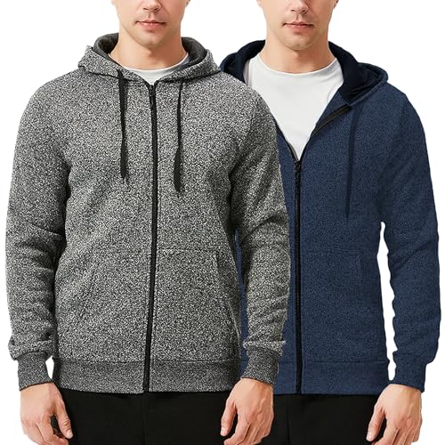 TEX2FIT 2-Pack Zip Up Hoodies for Men, Fleece Full Zip Hoodie Sweatshirt (2pcs Set) (Dark Grey/Blue Melange/X-Large)