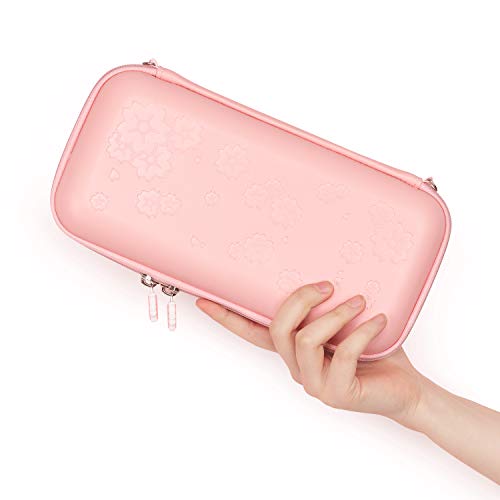 U Core Sakura Carrying Case for Nintendo Switch Lite- Portable Hardshell Slim Travel Carrying Case fit Switch Lite & Game Accessories - With 8 Game Card Slots and a Removable Wrist Strap