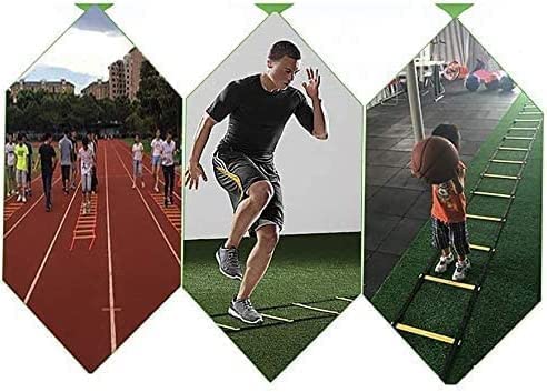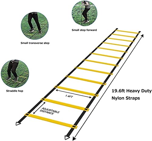 - Adjustable Design: The agility ladder comes with 12-rung design and up to 6 meters adjustment from rung to rung with nylon straps for different levels, skills and exercises. Suitable for all your training needs (ONLY Agility Ladder), Training Skills: Adequate and adequate warm-up is important for sustainable training. Whether it is vocational training, rehabilitation or fun sports, our sports managers to bring fun and variety to your training through a progressive training program, Convenient to Install: Whether indoor or outdoor, you can quickly get a user experience.With durable nylon straps, each two ends can be connected to make a longer size, Applicable Occasions:This agility ladder is very helpful for sport training, soccer, basketball exercises, hockey, lacrosse, tennis, badminton, rugby to increase acceleration, leg strength and speed, basic skills, balance, rhythm and body control, Easy to Carry: The training ladder can be easily stowed in the carrying bag so that you can train anytime, anywhere. A great idea for children, coaches, athletes or anyone else who loves athletic training