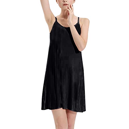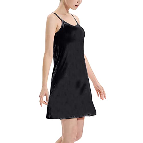 - Lightweight and soft, stretchable and breathable fabric, good touch feeling, relax and comfortable to wear, Adjustable spaghetti strap dress, sleeveless camisole tank dress for leggings, soft cotton dress knee length, scoop neck mini dress suitable for summer wear, Built-in bra sleepdress, full slip dress with solid color, basic sleepdress, loose waist nightshirt flowy swing, women's sleep chemise padded slip lingerie, Full slip dress, great as undergarment or as layering piece. Perfect for under dress for casual daily, home clothing, nightgown, also suitable for club/party/cocktail dress, etc. You will always look sexy and charming., Note: Hand wash or machine wash available, hang dry