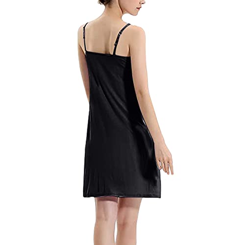 Womens Full Slip Dress Built-in Bra Chemisole Sleepwear Adjustable Spaghetti Strap Nightgown, Black, X-Small