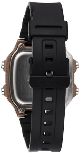 - Black and Gold watch featuring silver-tone pushers and multifunction dial with stopwatch, countdown timer, and world time indicator, Features five daily alarms and LED light with afterglow, 39.5 mm resin case with mineral dial window, Japanese quartz movement with digital display, Water resistant to 100 m (330 ft): In general, suitable for swimming and snorkeling, but not scuba diving