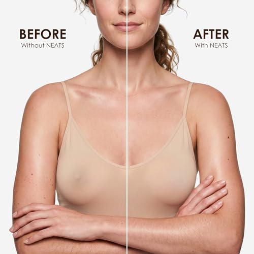 - CONVENIENT SIZE: Not too big, not too small! Our reusable nipple concealers aim to provide an ultra precise nipple coverage that will fit women from A all the way to D cups with it's handy size of 3 1/2'' in diameter., TAILORED FIT: The NEATS pasties are meticulously shaped into the sleekest mold and pass a series of quality tests to guarantee the most luxurious & natural braless experience. Suitable with almost any hollywood show dress, creating a truly invisible & clear nippleless look., SELF BLENDING COLOR: It's unique shade will blend seamlessly into your skin using ultra thin edges, merging your skin pigment to the nipple cover tone., REFINED FORMULA: Backed by various clinical trials, our exclusive silicone is both Hypoallergenic and Eco-Friendly. Made from the finest and most exclusive materials, this nipplecover can bend due to its high flex properties. Did we mention it is fully waterproof?, THE COMPLETE PACKAGE: What you will get: NEATS travel pack - Free yourself even when abroad with our stylish and practical travel case! NEATS Nipple Covers - The ultimate Nipple Cover. Comes with plastic film to keep the dust away. NEATS Shell - To keep your nipple covers always in their perfect shape. Protective Insert pads - Extra Soft Cotton. Optional use. Recommended if you have extra sensitive nipples. NEATS Dress tape - To keep your dress in its place. We thought you'd find these handy..., TAKE IT ANYWHERE: Always have your NEATS Nipple Covers nearby with the NEATS Travel Box. Whether you are going to a concert, party, wedding, a long trip or even to the gym, you can take these adhesive nipple pasties with you, and get the perfect strapless bra feeling., ADD-ON FOR FREE: Because we want you to have all the elements of a perfect look, we have included our NEATS Double Sided Sticky Clothing Tapes, the ultimate clear bra straps that will keep all your backless outfits and any other loose clothing pieces in the right place., YOUR BODY, YOUR CHOICE: Your comfort and satisfaction are one of our top priorities. With NEATS there are no boundaries to who you are., WHY NEATS? NEATS is a brand focused on making a difference in women's daily lives, allowing them to feel more confident and comfortable in any type of clothing. Join the movement today., SATISFACTION GUARANTEED: Rest assured! Our premium customer support will always make sure that you are happy with your purchase. Got any questions? We are here to help! Just send us an message and we will promptly reply. Give your bra a break and free yourself with these amazing nipple petals!