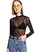 Floerns Women's Star Mesh See Through Mock Neck Long Sleeve Tops Tee T-Shirt, Black Solid, Large