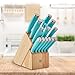 - Timeless & Transitional Design, Slip Resistant, Soft-Grip, Ergonomic Handles, Contoured Handles for Comfort, Exceptionally Sharp Blade Edges, Natural Pinewood Cutlery Block, 8" Chef Knife, 8" Slicing Knife, 8" Bread Knife, 7" Santoku Knife, 5.5" Santoku Knife, 5" Utility Knife, Six 4.5" Steak Knives, 3.5" Paring Knife, Kitchen Shears, Natural Pinewood Block