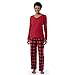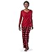 Fruit of The Loom Women's Waffle V-Neck Top and Flannel Pant Sleep Set, Radiant Red/Buffalo Check, Medium