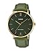 Casio MTP-VT01GL-3B Men's Minimalistic Gold Tone Green Leather Band Green Dial 3-Hand Analog Watch, blue, Analog Watch,Quartz Movement