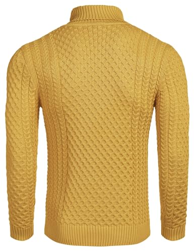 COOFANDY Men's Slim Fit Turtleneck Sweater Casual Knitted Twisted Pullover Solid Sweaters Yellow
