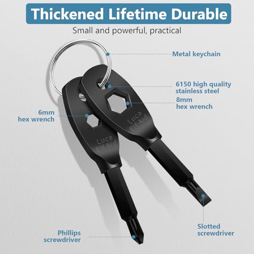 - 4-in-1 Design: The screwdriver has a total length of 70 mm, a rod length of 35 mm and a rod diameter of 6 mm. Phillips screwdriver-PH1 (#1), Slotted screwdriver-SL 4.5 mm, Hex Wrench-6 mm and 8 mm correspond to M3.5 and M5 nuts. 4-in-1 Design can meet your different needs, Very humanized and practical, Lightweight Portable: Luca Elf Aid This mini screwdriver keychain set is small in size, lightweight, easy to carry around. It has a round key ring to string the screwdrivers together, allowing you to use screwdrivers and hex wrenches anytime and anywhere according to your needs, Robustness Durability: Luca Elf Aid keychain screwdriver tool is made of precision cast steel for reliable performance. After heat treatment it is harder and more wear-resistant, not easy to bend. Chrome-plated surface treatment, effectively avoid rust and corrosion, durable, fashionable and simple appearance, Wide Range of Uses: 4-in-1 Portable Screwdriver Keychain Tool is enough for most repair or disassembly work, and can help you solve all kinds of emergency repairs in daily life. Suitable for furniture, toys, appliances, equipment parts, woodwork, game consoles, electrical equipment and other repair work. The keychain screwdriver set is a must-have companion for daily life at home, Fathers Day Gifts for Dad: This high quality most commonly used screwdriver heads and nut shaped keychain screwdriver tools It's the perfect gift for men, For upcoming Father's Day, graduation ceremony, wedding anniversary, birthday, coming of age ceremony, etc, You don't have to waste a lot of time worrying about choosing a gift for your father, Husband, Boyfriend, Relatives, Friends, DIY men and so on