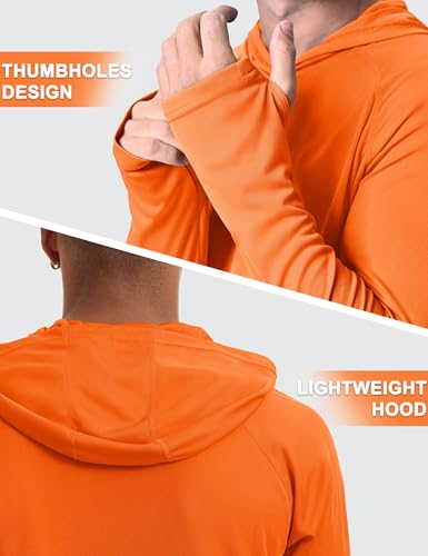 MAGCOMSEN Fishing Shirts for Men Long Sleeve with Hood UPF 50 Sun Protection Moisture Wicking Rash Guards Summer Orange L