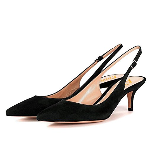 Divanne Slingback Pumps, Women's Pointed Toe Low Heel Sandals Slingback Strap Kitten Heel Pumps Evening Party Wedding Shoes, Black Suede, 8