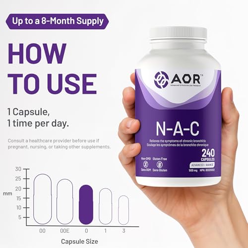 - Lung and liver support - AOR NAC Supplement 500mg N-Acetyl Cysteine is formulated to potentially contribute to lung and liver health, potentially assisting in easier breathing and promoting optimal liver function., Immune system support - Our NAC supplement might offer support to your immune system, potentially aiding in overall immune health and potentially improving your body's defense mechanisms., Antioxidant properties - N-Acetyl Cysteine is recognized for its potential antioxidant properties, which may contribute to protecting your cells from potential damage and supporting potential immune system health., Quality you can trust Quality you can trust - AOR is a reputable brand recognized for its commitment to high-quality supplements. Our NAC supplement is crafted with pure, high-grade ingredients, potentially ensuring potential efficacy and safety., Convenient dosage - With 240 capsules per bottle, you receive a long-lasting supply of NAC, simplifying its incorporation into your daily routine for potential continuous support.
