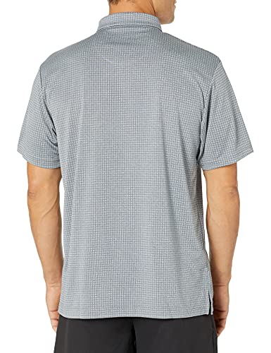 PGA TOUR Men's Mini Windowpane Short Sleeve Golf Polo Shirt, Tradewinds Heather, Medium