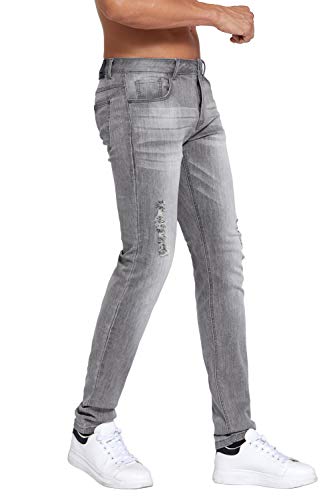 ZLZ Blue Black Ripped Distressed Jeans for Men Slim Fit, Men's Fashion Design Streetwear Destroyed Jeans Pants Stretch Fit, Stone Grey, 31 Regular