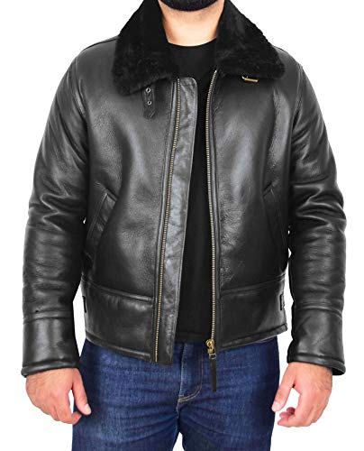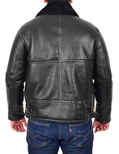- A true classic iconic style top quality genuine sheepskin flying leather jacket for men, this super sumptuous B-3 type aviator jacket is sure to be hit with you, comfortable & cozy keep you warm throughout the cold winter months, It's a onetime investment garment and a life time companion, sheepskins are synonymous with providing the ultimate insulation during the winter seasons, Expertly handcrafted from a top quality A-Grade nappalane finish genuine sheepskin with full shearling wool inside, boosting off with a tailored comfort fit sizing, It features a heavy duty YKK middle zip fastening, two outer hand warmer pockets, folding or pop up collar with buckle fastening to cover you from the weather elements, Adjustable buckles at the side of the waist to enhance the fit, full flap under the zip, Fully lined interior with a soft and chunky genuine double face shearling, one zipped pocket inside.100% Real Sheepskin
