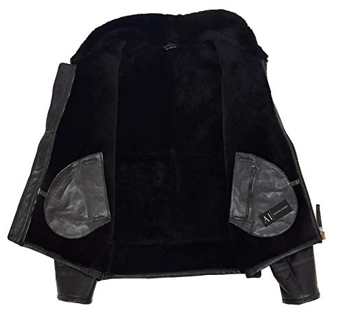 A1 FASHION GOODS Original Sheepskin Flying Jacket for Men B3 Bomber Aviator Pilots Shearling Coat Raptor (Black/Black, Large)