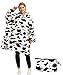 Catalonia Cow Print Oversized Hoodie Blanket Sweatshirt, Wearable Sherpa Blanket Pullover, Soft Warm Comfortable Portable Travel Sweater Pillow for Adults Men Women, Gift for Her
