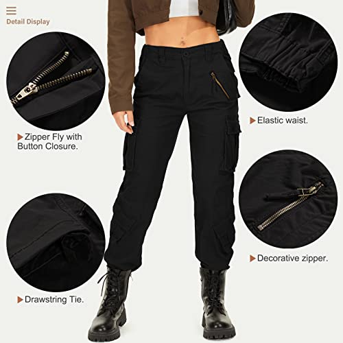 Women's Cargo Tactical Wild Casual Military Combat Cargo Work Camo Hiking Pants,2083,Black,30