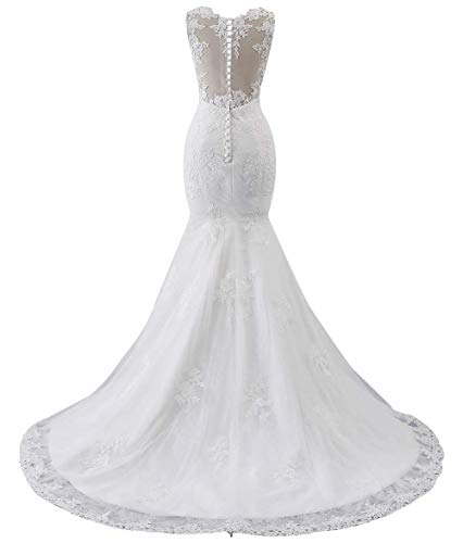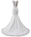 BEAUTBRIDE Womens Train Wedding Dress Mermaid Lace V Neck for Bride Long Bridal Gown Style8 Ivory 14, Style8-ivory, 14