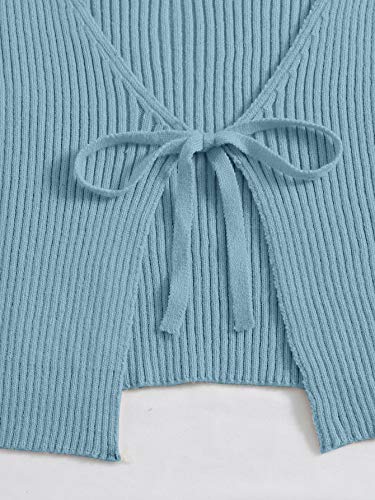 Floerns Women's Tie Front Long Sleeve Crop Top Rib Knit Coat Cardigan Blue S