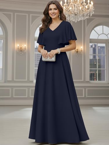 koh koh Plus Size Womens Short Sleeve Ruffle Elegant Modest Dressy Wedding Guest Prom Bridesmaid Cocktail Party Flowy Long Tall Formal Maxi Dress Dresses Gown Gowns, Dark Navy Blue XL 14-16