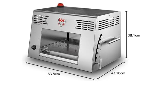 - PERFECTLY SEARED Searing your steak at extreme temperatures of 1500 degrees F produces a delicious golden brown crust on both sides without overcooking the inside., INCREDIBLY JUICY Extreme temperatures generate a "Maillard Reaction" causing amino acids to react with sugars to intensify flavor and produce the juiciest steak you've ever tasted., READY IN MINUTES More heat means less time from the grill to your mouth. Your steak is ready in as little as 3 minutes depending on thickness and your desired doneness., PREMIUM STEAKHOUSE TECHNOLOGY Schwank Grills are powered by dual Schwank Infrared burners; the exact same technology used by the best steakhouses in the world. Same technology, same incredible taste., PORTABLE GRILLING The compact design and sturdy carrying handles of the Schwank Grill allow you to grill delicious food in any outdoor setting. Enjoy the juiciest food while tailgating at a sporting event, camping, or at a friend's house, MADE IN USA with PREMIUM STAINLESS STEEL Proudly made in the USA using high-grade 304 stainless steel for exceptional durability, corrosion resistance, and long-term outdoor performance — engineered to withstand intense heat and year-round grilling