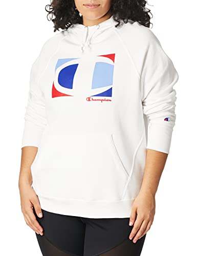 Champion Women's Powerblend Fleece Hoodie, Big C Graphic Logo, White-586959, X-Small