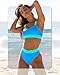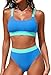 ZINPRETTY Women High Waisted Bikini Sets Color Block Swimsuits 2 Piece Bathing Suits Tummy Control Sporty Teens, Blue Bikini Set, Medium