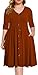 BEDOAR Women's Casual Plus Size Dress V-Neck Knee-Length A-Line Party Cocktail Swing Dress with Pockets, Brown, 14 Plus